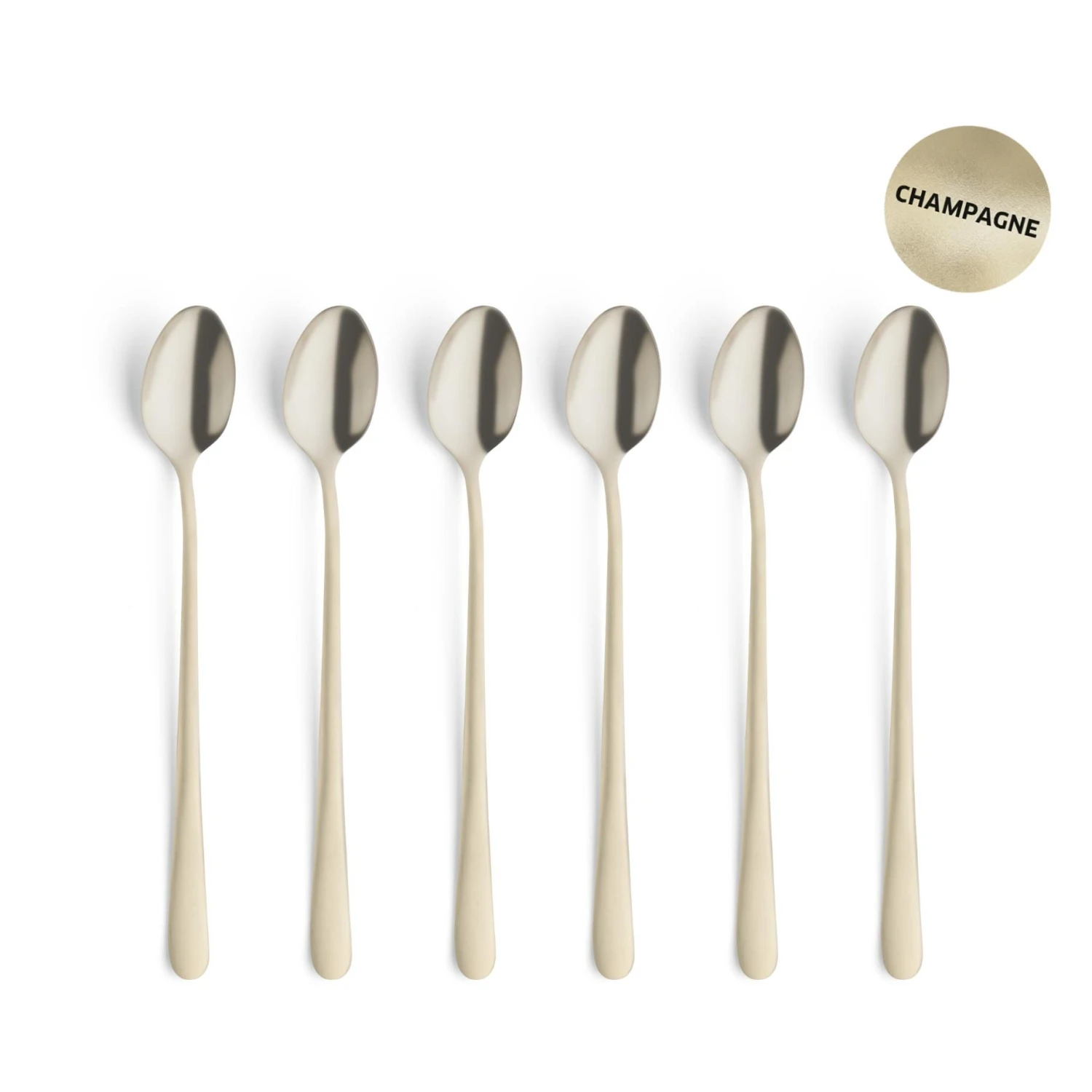Breng een vleugje elegantie naar uw koffie- en dessertmomenten met de Amefa Austin Lattelepels in een verfijnde matte champagnekleur. Deze set van 6 lattelepels is ideaal voor het roeren van latte’s in hoge glazen of het serveren van desserts. Vervaardigd uit hoogwaardig roestvrij staal, combineert deze set duurzaamheid met een luxueuze uitstraling. Hoewel deze lepels vaatwasmachinebestendig zijn, wordt het aanbevolen om een reinigingsmiddel met een fosfaatgehalte van 3% of lager te gebruiken en een afwasprogramma van 40ºC of lager om de kleur en glans te behouden. Voor langdurig behoud van de prachtige matte champagne-afwerking is handwas de beste keuze. Voeg de Amefa Austin Lattelepels in mat champagne toe aan uw bestekcollectie voor een stijlvolle en verfijnde eetervaring.