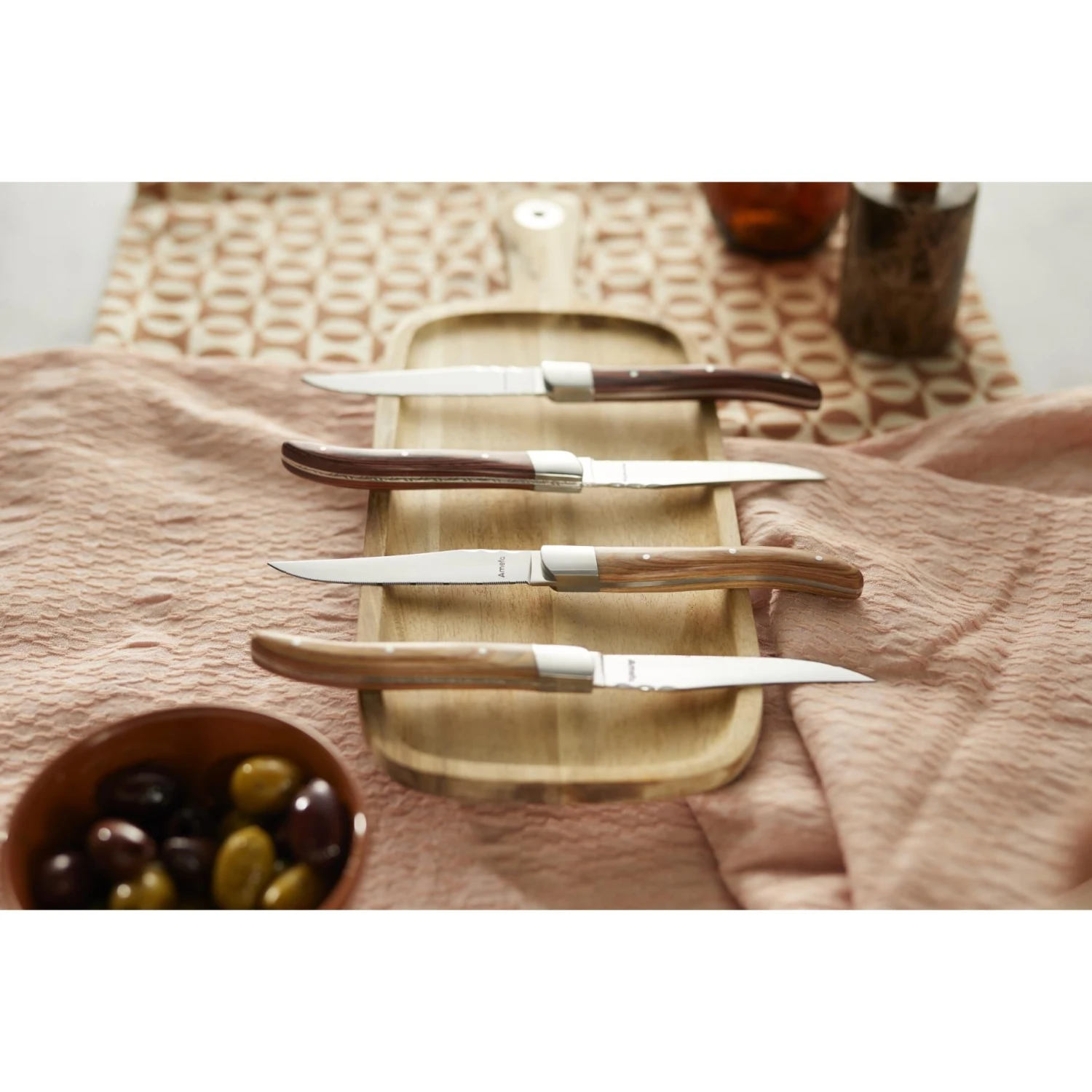 ???????Merk: Amefa. Serie: Royal Steak. Lengte mes: 22,5cm. Materiaal handvat: pakkahout. Materiaal lemmet: Roestvrijstaal. Kleur: bruin, zilver.
