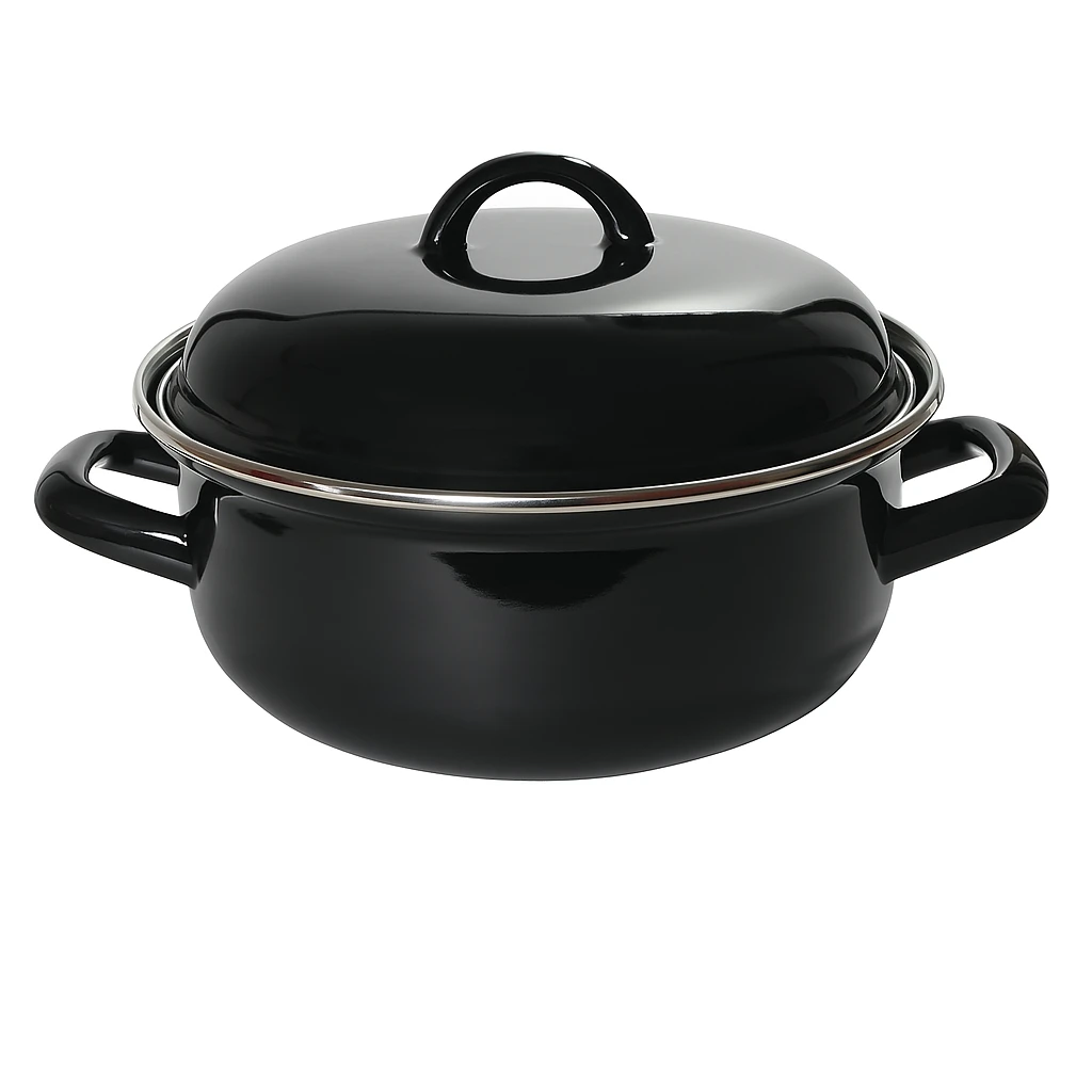 Een flinke braadpan, voor de echte fan van braden. Als u van het braden van vlees, gevogelte of wild houdt en u bedient regelmatig een grote groep mensen is dit de ideale braadpan voor u. Met zijn inhoud van 5 liter en diameter van 26 cm is de braadpan zeer geschikt voor de grote maaltijden. De braadpan heeft een dikke bodem en is gemaakt van geëmailleerd staal. Hierdoor wordt de warmte goed verdeeld en zal de binnenkant van het vlees tegelijk met de buitenkant klaar zijn. De braadpan is zwart, zoals een braadpan eruit hoort te zien.