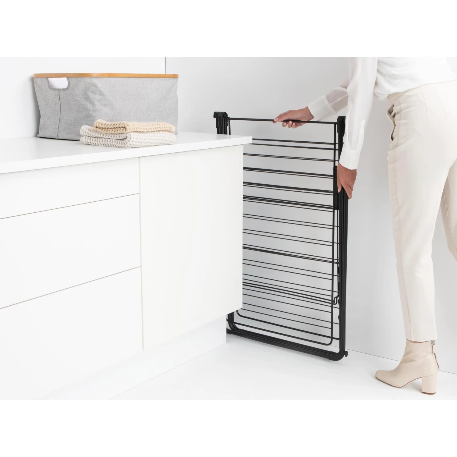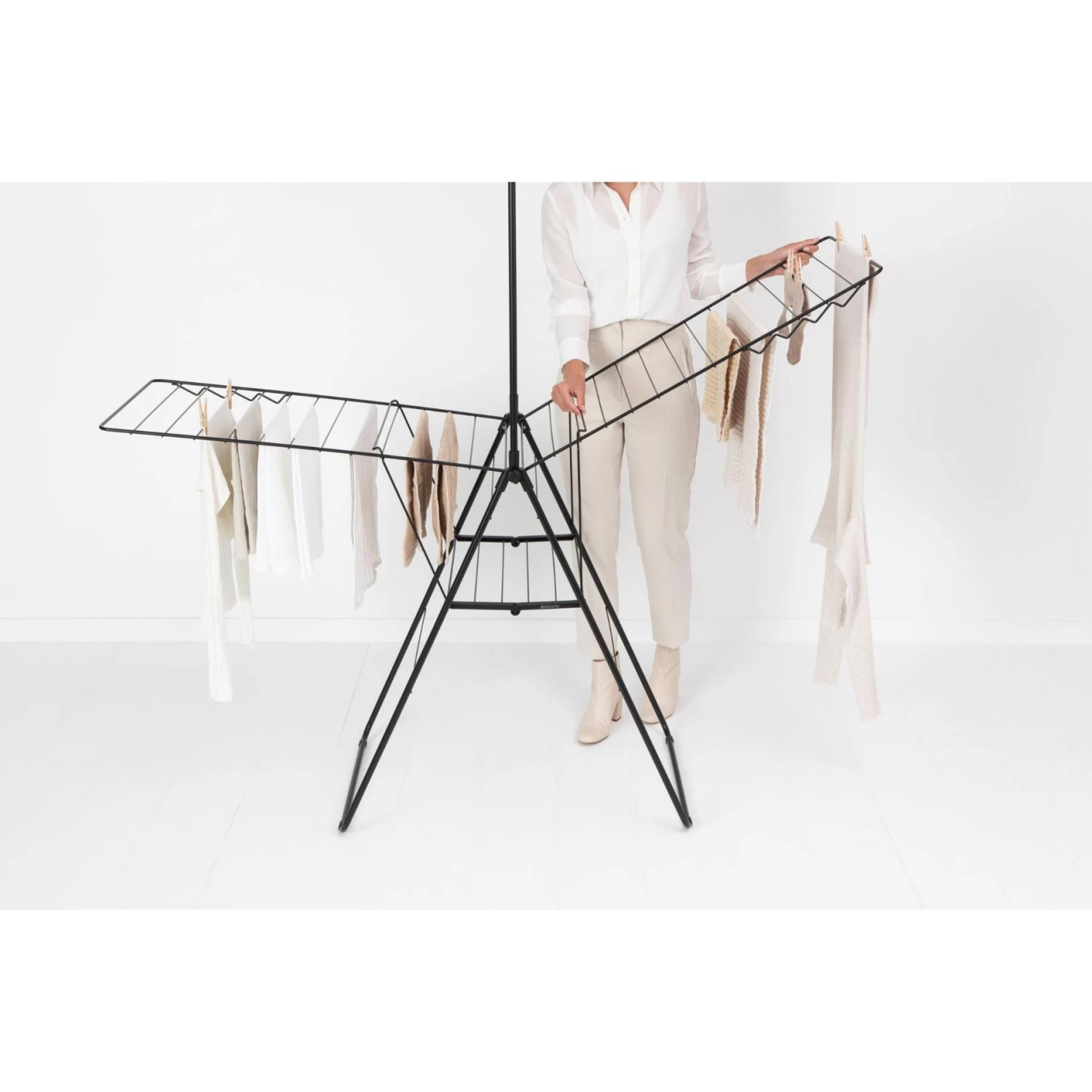 Dit droogrek biedt plaats aan maximaal drie wasladingen tegelijk, waardoor het ideaal is voor zowel grote als kleine wasgoed. De in hoogte verstelbare vleugels zorgen voor flexibiliteit en maken het gemakkelijk om ruimte te creëren voor verschillende soorten kledingstukken.