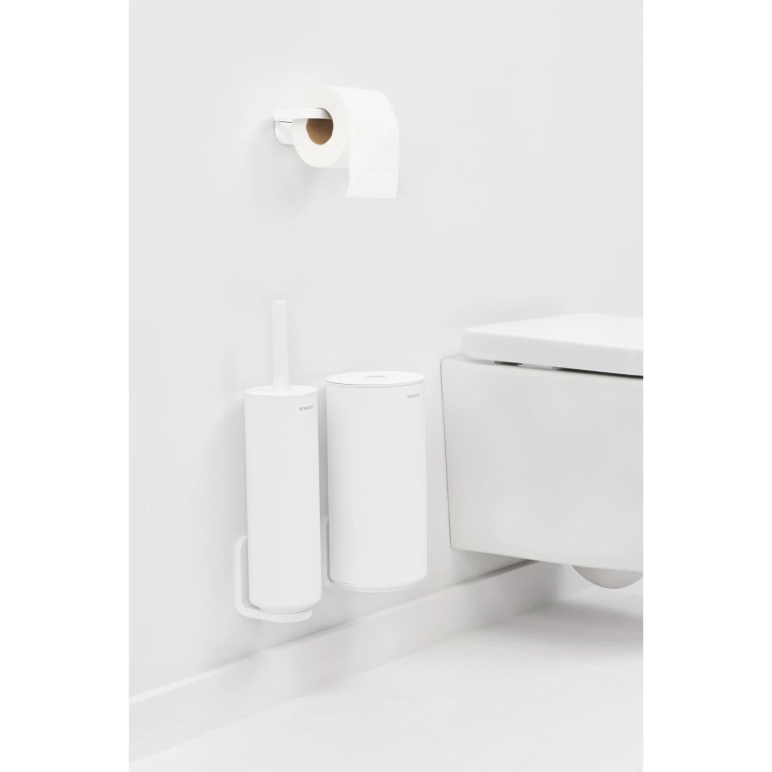 Om te beginnen, een sterke en hygiënische toiletborstel met houder, die zelfs onder de rand gemakkelijk schoonmaakt dankzij de speciale borstelvorm. De uitneembare kunststof binnenhouder maakt het legen eenvoudig en snel. Daarnaast vind je een minimalistische toiletrolhouder met brede opening, waardoor het vullen een fluitje van een cent is. En last but not least, een reserverolhouder met ruimte voor maar liefst twee extra rollen, voorraad genoeg!