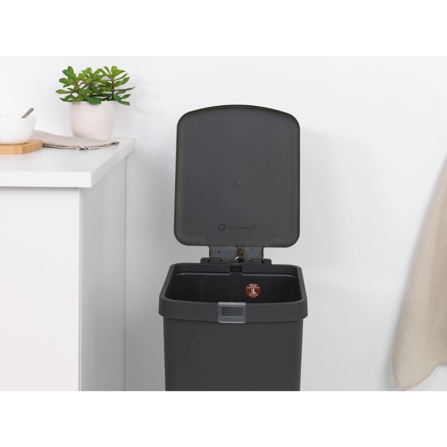 - Zak uit beeld – bijpassende Brabantia PerfectFit afvalzakken met trekbandsluiting verkrijgbaar (maat L).