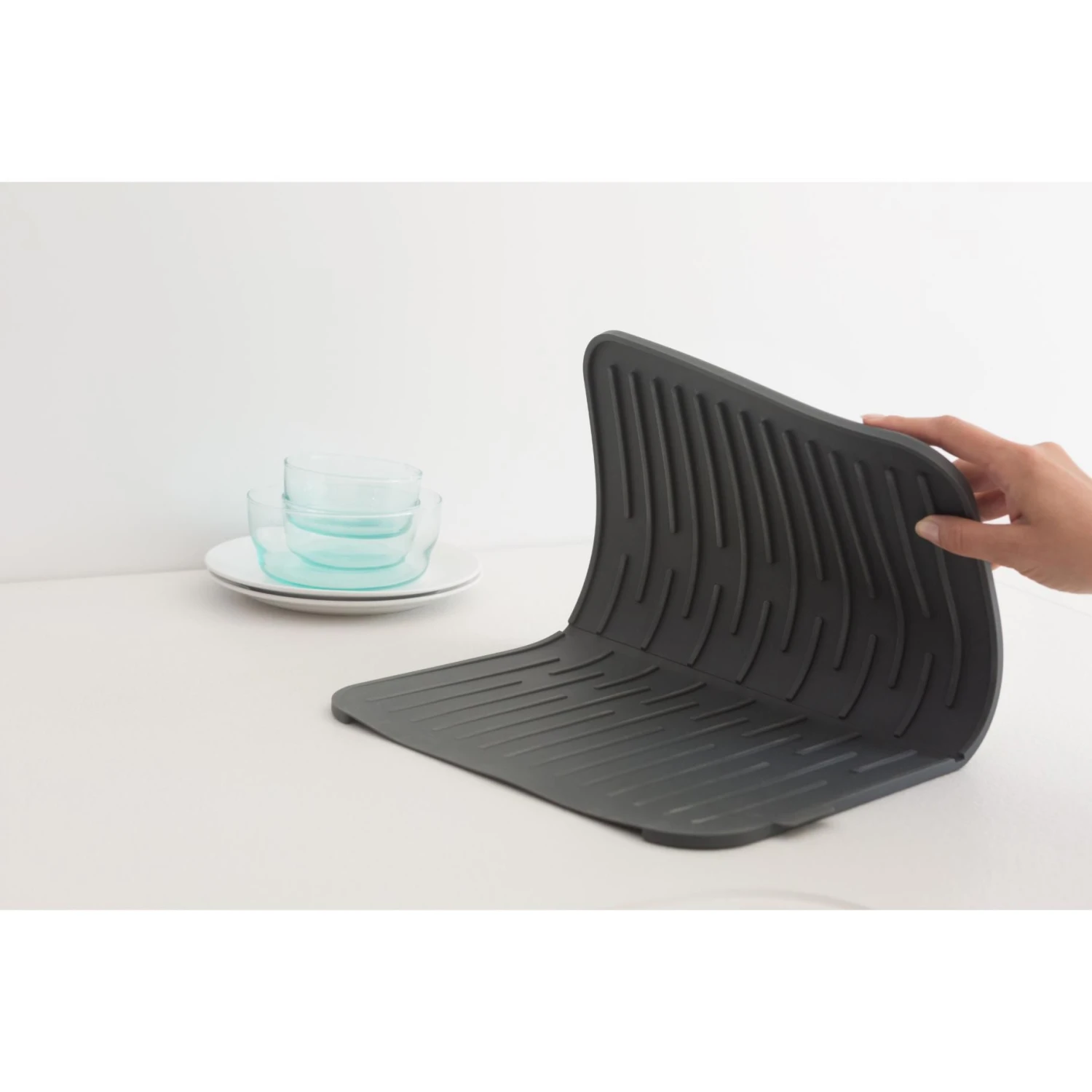 Heb je extra afdruipruimte nodig? Dan is de Brabantia SinkSide Siliconen Afdruipmat de perfecte oplossing! Deze zachte en antislip mat vermindert de kans op scherven en krassen, waardoor je vaat veilig kan drogen.