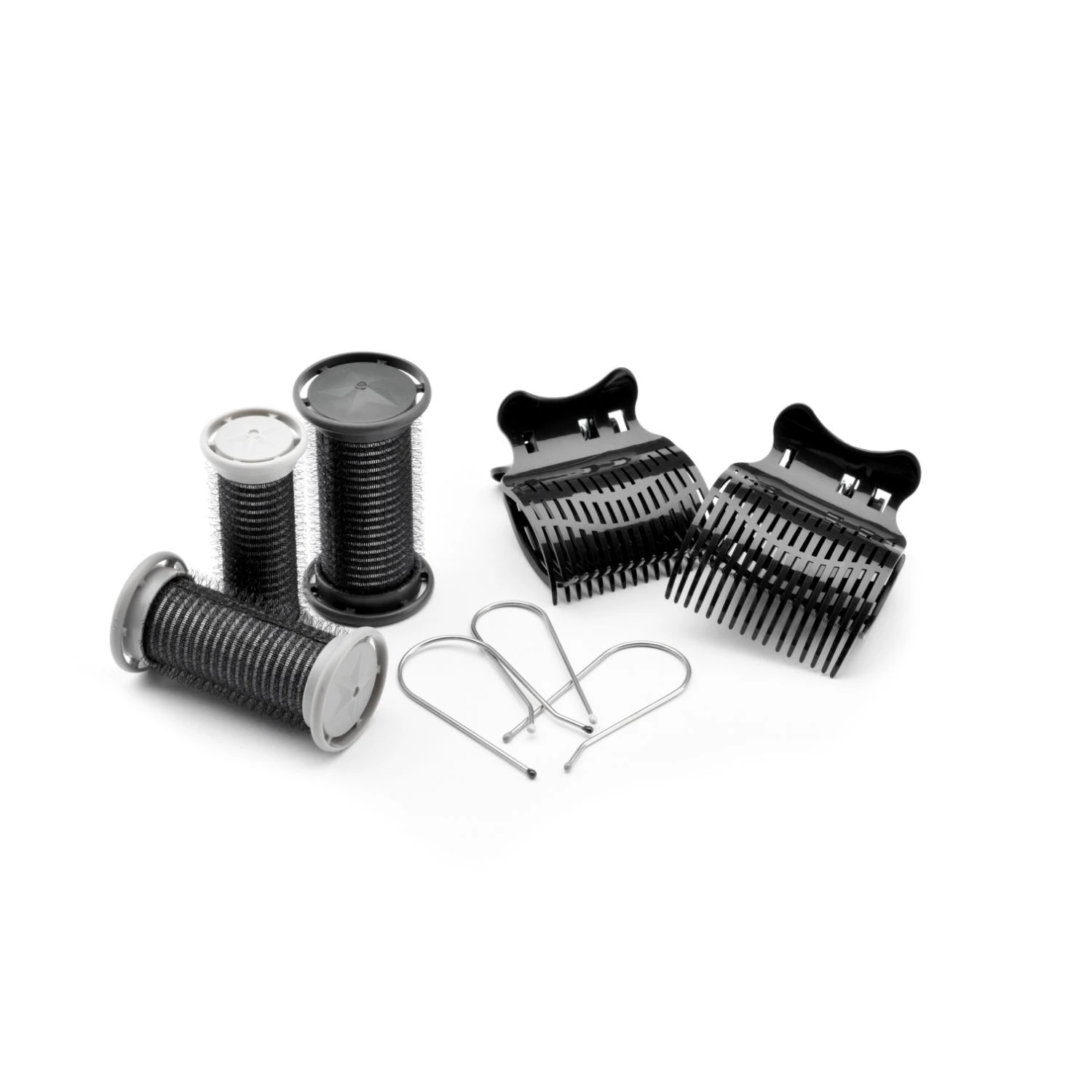 De Carmen Pro Roller set (C5040), ook wel bekend als de Carmenset, is makkelijk in gebruik en perfect geschikt voor het creëren van volume en krullen van verschillende soorten. Van groffe natuurlijke krullen tot een weelderige haardos met kleine krullen, met deze set kan het allemaal. De rollers hebben een klittenband bekleding, waardoor de rollers mooi op hun plek blijven zitten. Met de ‘klaar voor gebruik’ indicatie is het makkelijk te zien als de rollers volledig warm zijn. Gelukkig hebben ze maar 5 minuten nodig om op te warmen. Na gebruik berg je de set gemakkelijk op. Deze krulset bestaat uit acht grote (27 mm), acht medium (23 mm) en acht kleine (20 mm) met klittenband beklede rollers. Inclusief vlinderklemmen en clips in verschillende maten en kleuren.