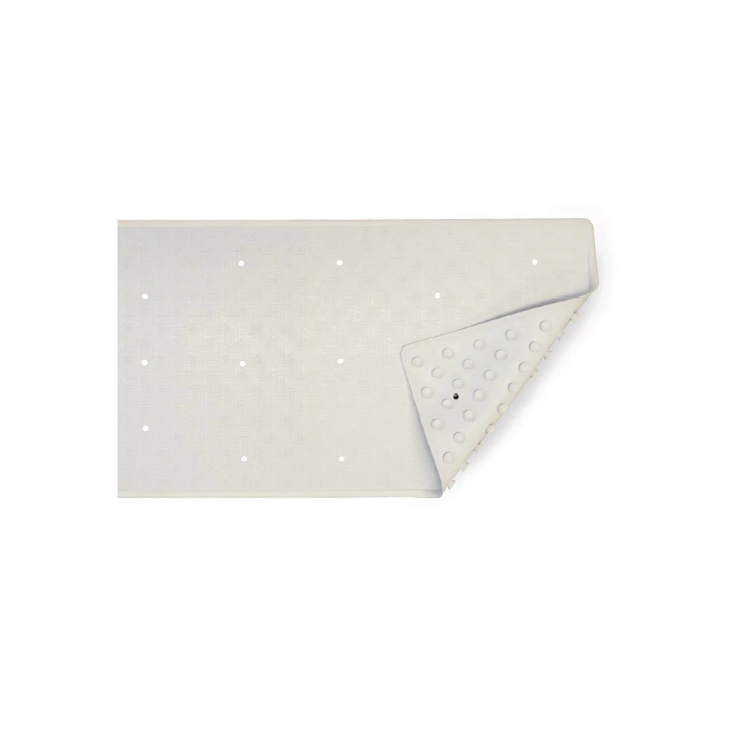 Verrijk je badkamer met deze effen witte douchemat. Door de zuignappen heeft deze douchemat een stevige grip, en dankzij het patroon wordt het gevaar van uitglijden tot een minimum beperkt, terwijl het water toch prettig wegloopt. De mat is 35×75 cm groot, en eenvoudig te reinigen met lauwwarm water.