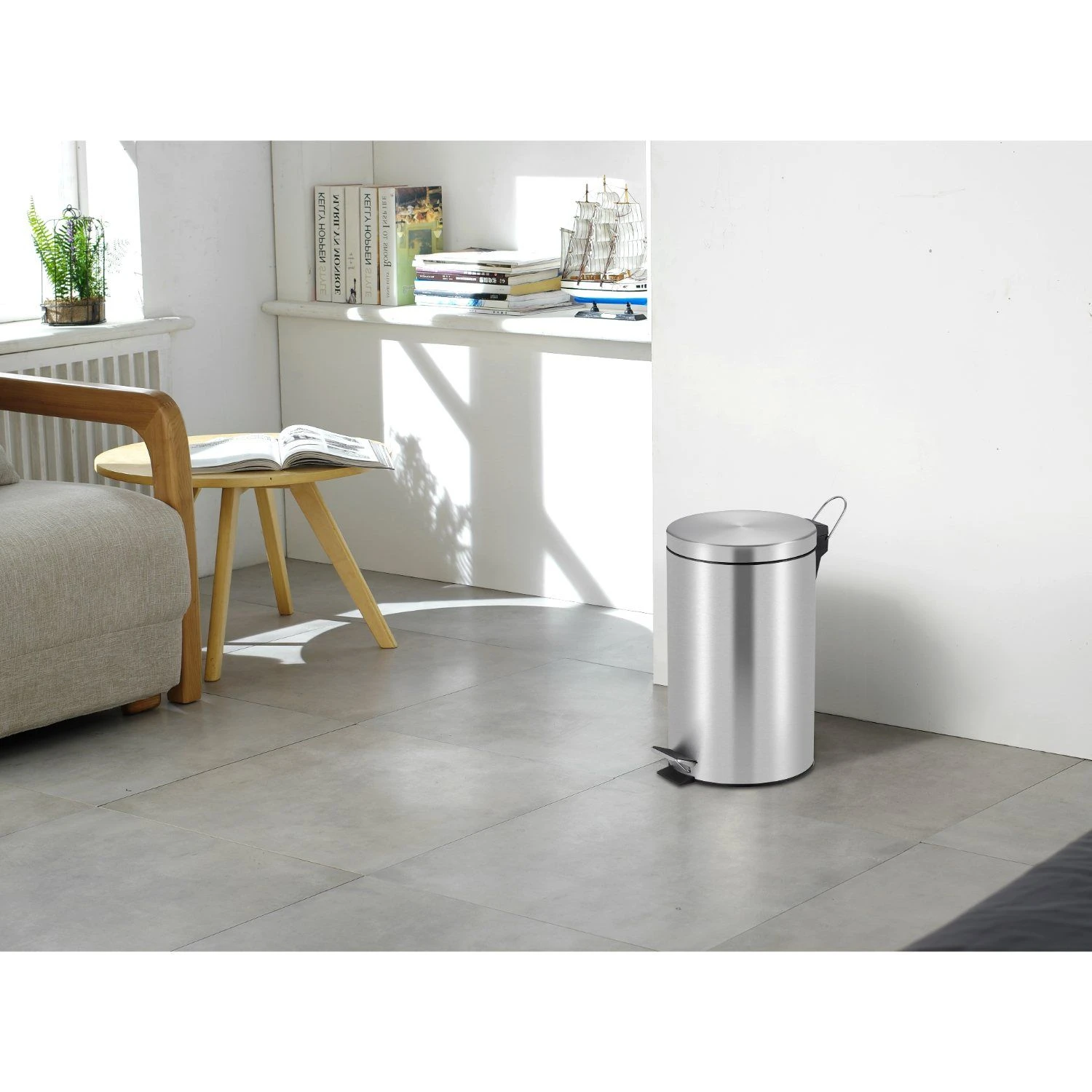 Maak afvalbeheer eenvoudig en stijlvol met de Eko Pedaalemmer 12 liter Classic. Deze ronde pedaalemmer is gemaakt van hoogwaardig mat-zilver RVS en heeft een compact formaat dat perfect is voor kleinere ruimtes, zoals badkamers, kantoren of slaapkamers. Met een inhoud van 12 liter biedt de pedaalemmer voldoende capaciteit voor dagelijks gebruik. De kunststof binnenemmer zorgt voor eenvoudig legen en schoonmaken. Dankzij het stevige pedaal kun je de pedaalemmer moeiteloos openen en sluiten, terwijl het deksel geruisloos sluit dankzij het soft-close mechanisme. Het tijdloze en strakke ontwerp van de Eko Pedaalemmer Classic past perfect bij elke interieurstijl. Voeg functionaliteit en stijl toe aan je afvalbeheer met de Eko Pedaalemmer Classic en geniet van een opgeruimde en georganiseerde omgeving.