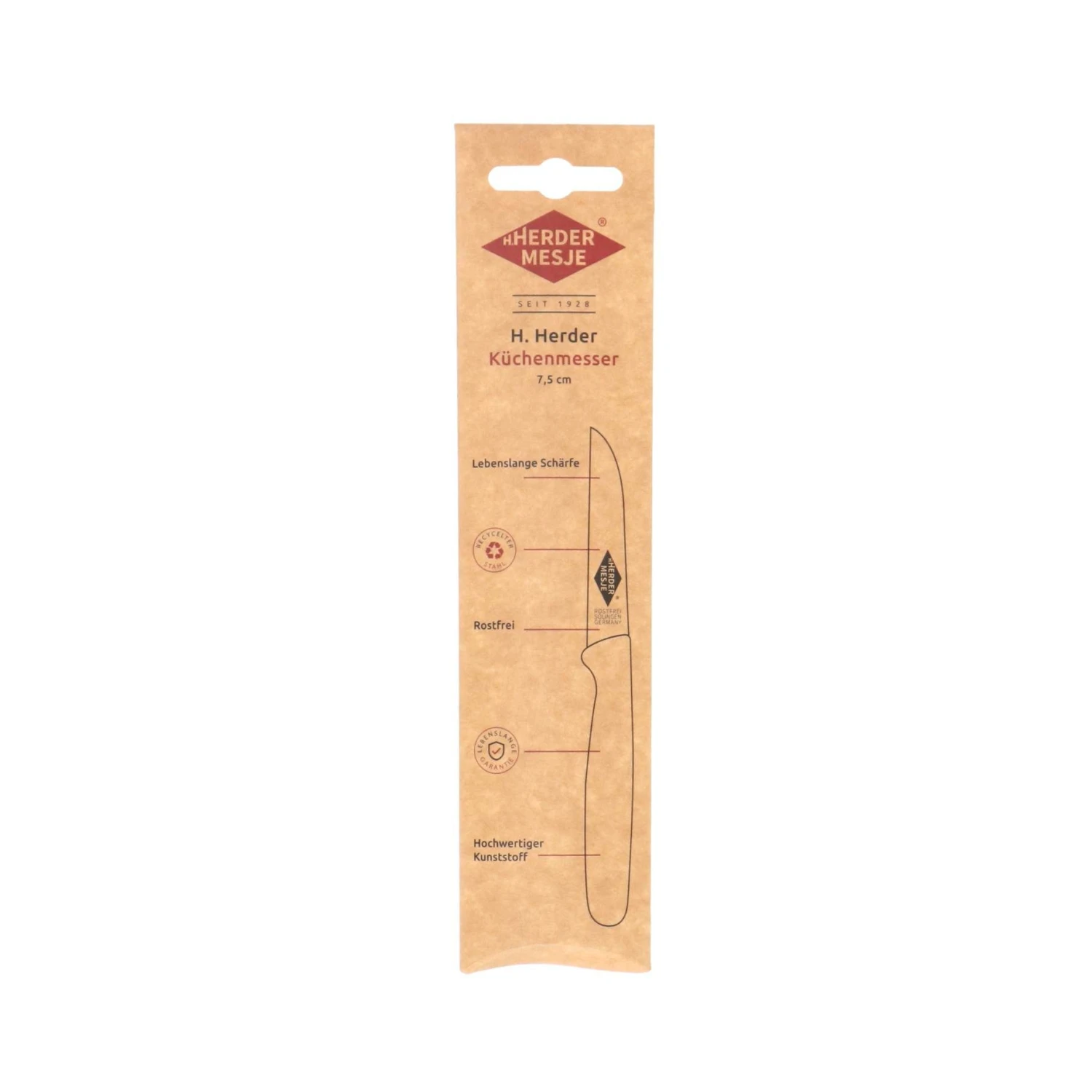 Voeg een vleugje kleur en precisie toe aan je keuken met het Herder Keukenmes! Dit mes van 7,5 cm is ideaal voor al je snijtaken, van het snijden van groenten tot het bereiden van vlees.