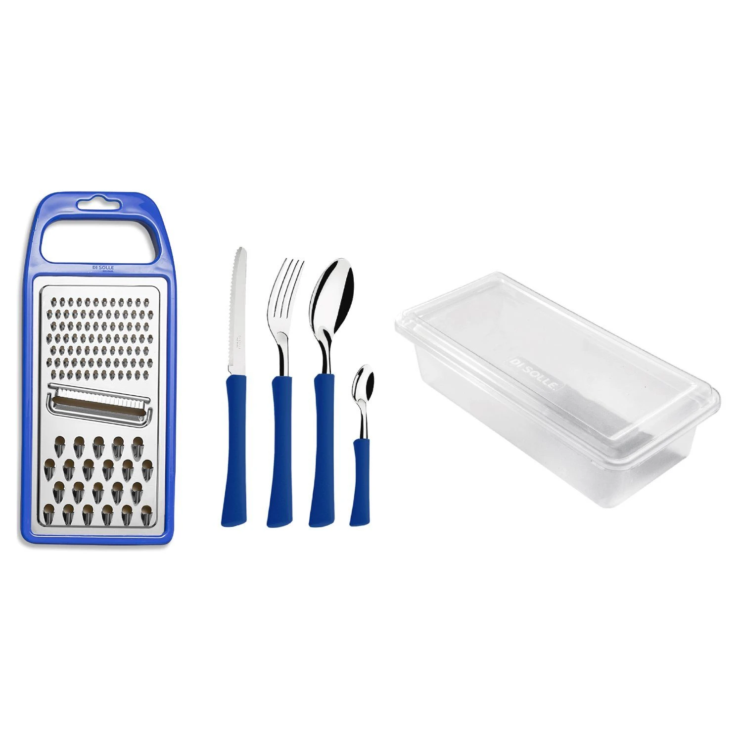 Met dit bestekset Inova in de kleur blauw heb je alles bij de hand! Het complete bestekset zit in een handig doosje waar bovenop een rasp en schaaf ligt. In het bakje kun je je lunch of kliekjes in opwarmen. Na gebruik kan de hele set in de vaatwasmachine.