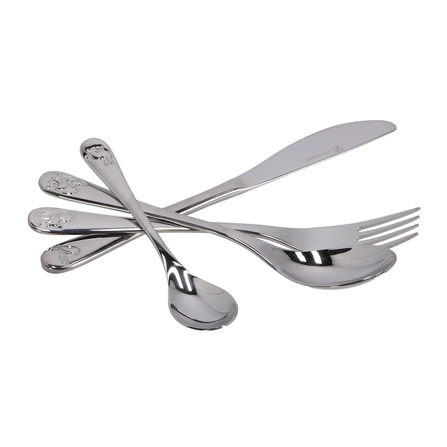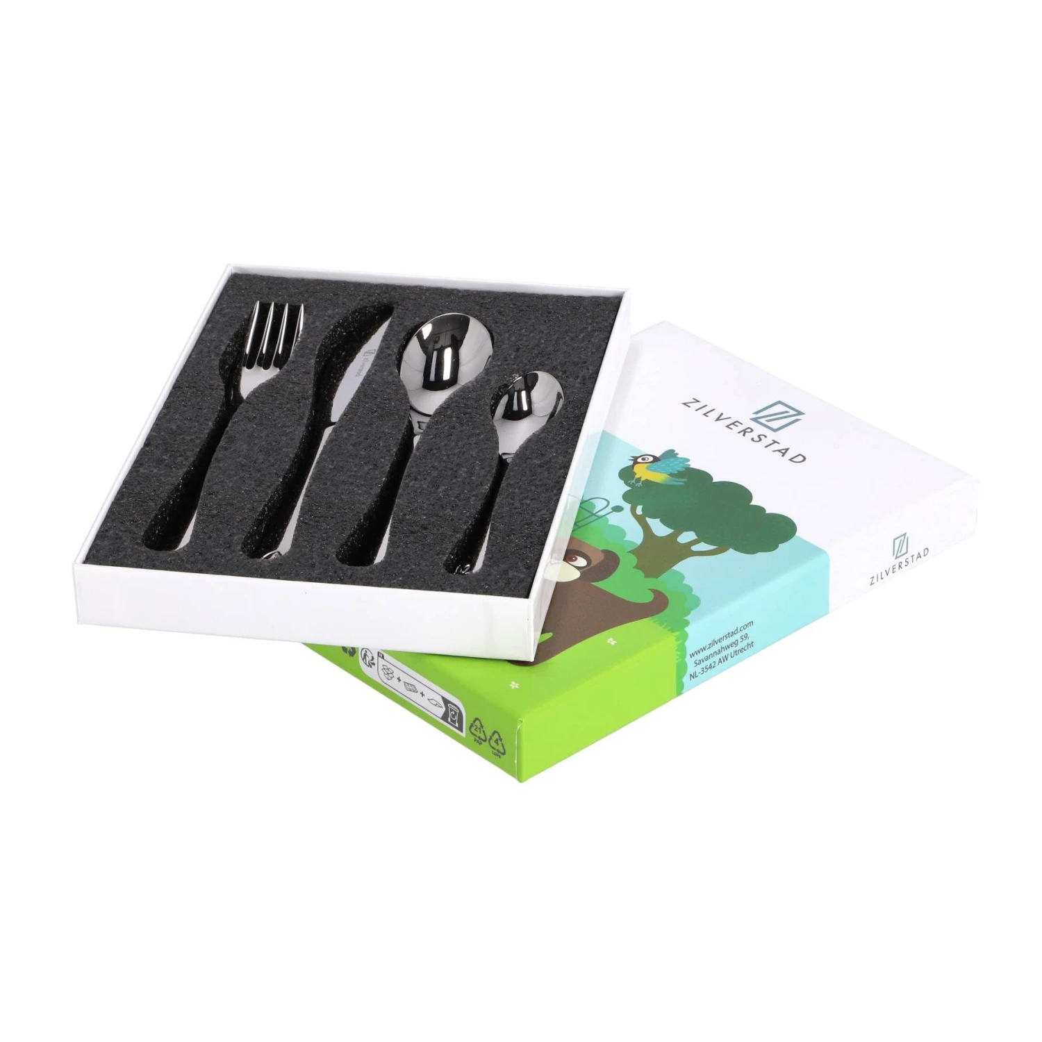 Maak maaltijden leuker voor de kleintjes met de 4-delige kinderbestekset met een schattig huisdierenthema. Deze set, geschikt voor kinderen van 3 tot 6 jaar, bevat een vork, mes, lepel, en dessertlepel, allemaal vervaardigd uit hoogwaardig 18/10 roestvrij edelstaal voor duurzaamheid en langdurige glans. Het bestek is perfect afgestemd op kleine handjes en is bovendien graveerbaar, wat het een persoonlijk en speciaal cadeau maakt. Geschikt voor in de vaatwasser, is deze set eenvoudig schoon te maken en ideaal voor dagelijks gebruik. Verpakt in een charmante doos van 21,5 cm x 15,5 cm x 3,5 cm, is deze kinderbestekset met huisdierenthema de perfecte manier om kinderen te laten genieten van elke maaltijd.