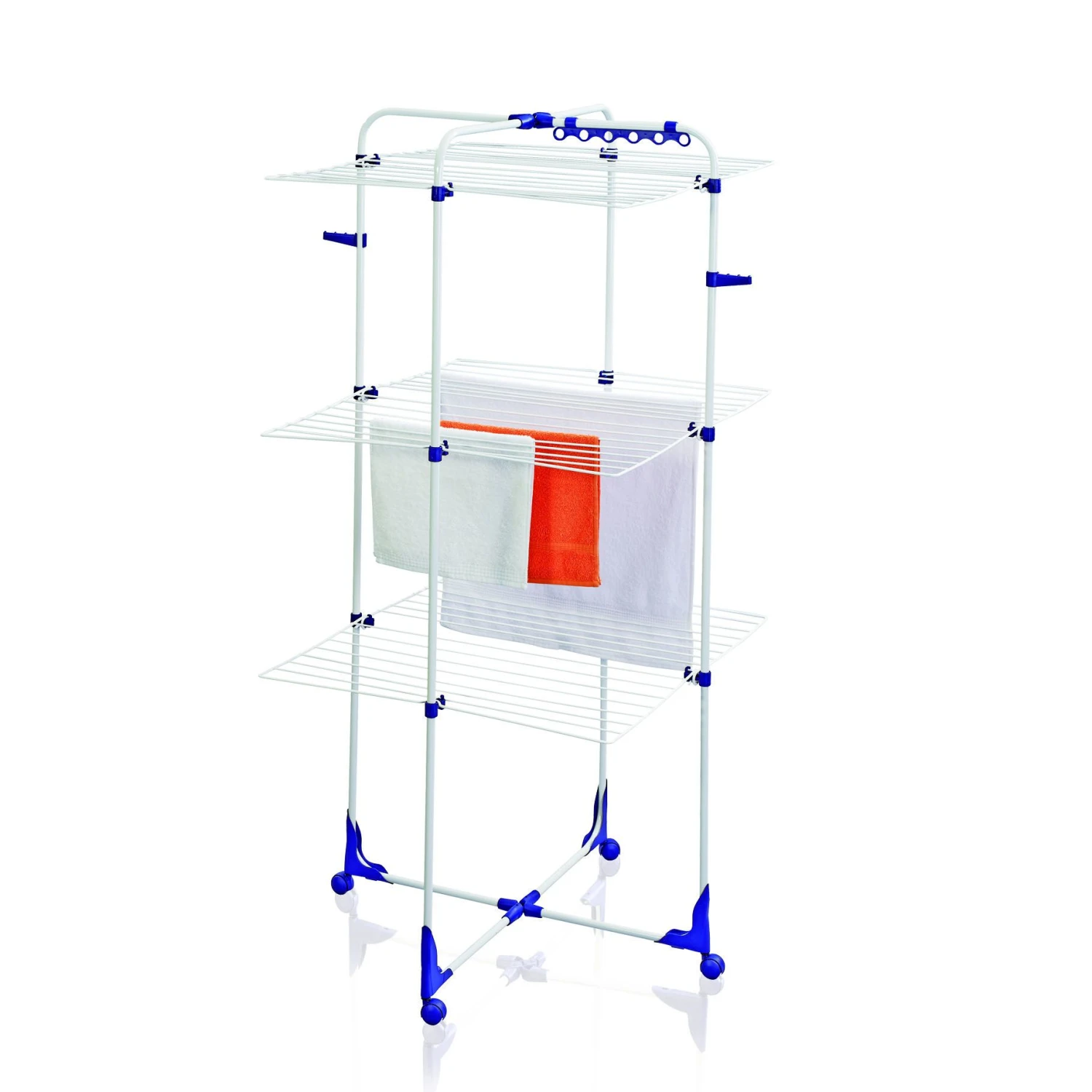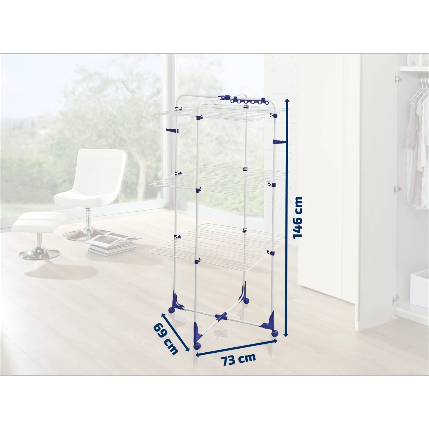 - Compact ontwerp: Het standvlak van 69 x 73 cm maakt deze droogtoren geschikt voor diverse kleine ruimtes.