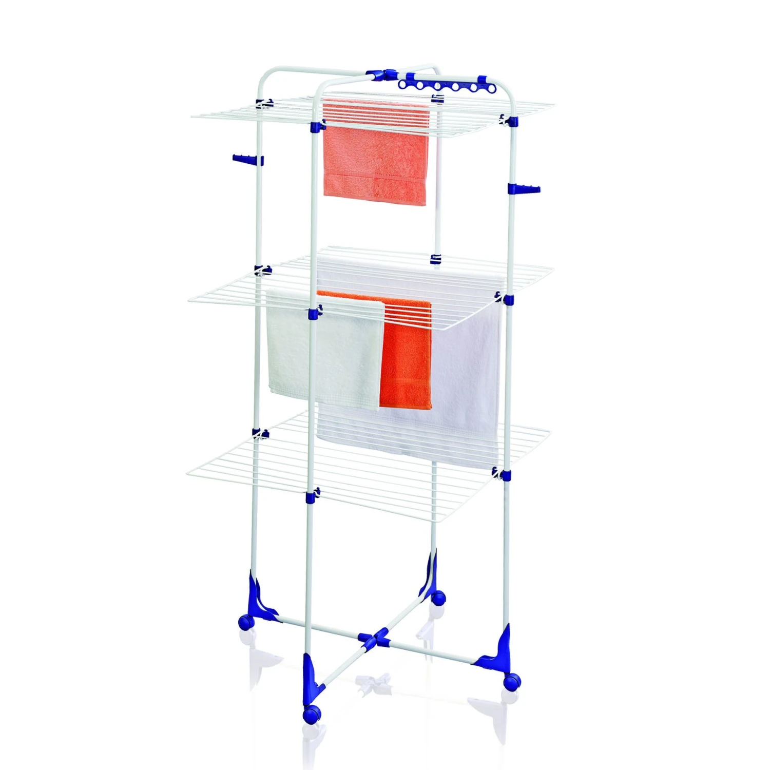 De Droogtoren Classic Tower 340 is een echt ruimtewonder en biedt praktisch gemak bij het drogen van je wasgoed. Met een standvlak van slechts 69 x 73 cm past deze droogtoren moeiteloos in diverse ruimtes, zoals de douchecabine, smalle badkamer, klein balkonnetje of krappe gang. Met drie droogniveaus en een indrukwekkende drooglengte van 34 meter kun je maar liefst drie tot vier wasmachineladingen aan kleding ophangen.
