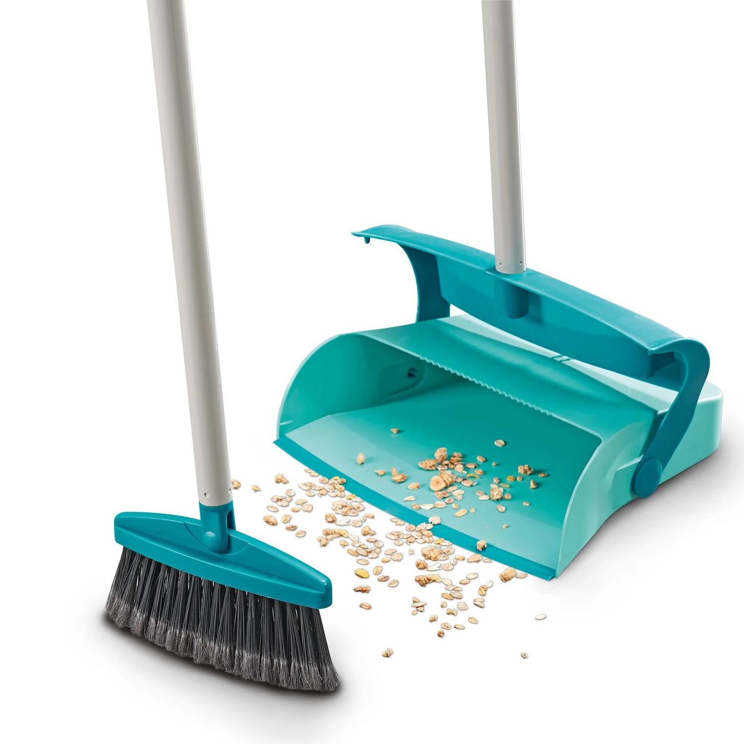 Maak schoonmaken eenvoudig en comfortabel met de Leifheit Stoffer en Gesloten Blik met Lange Steel, jouw betrouwbare partner voor een schone vloer!
