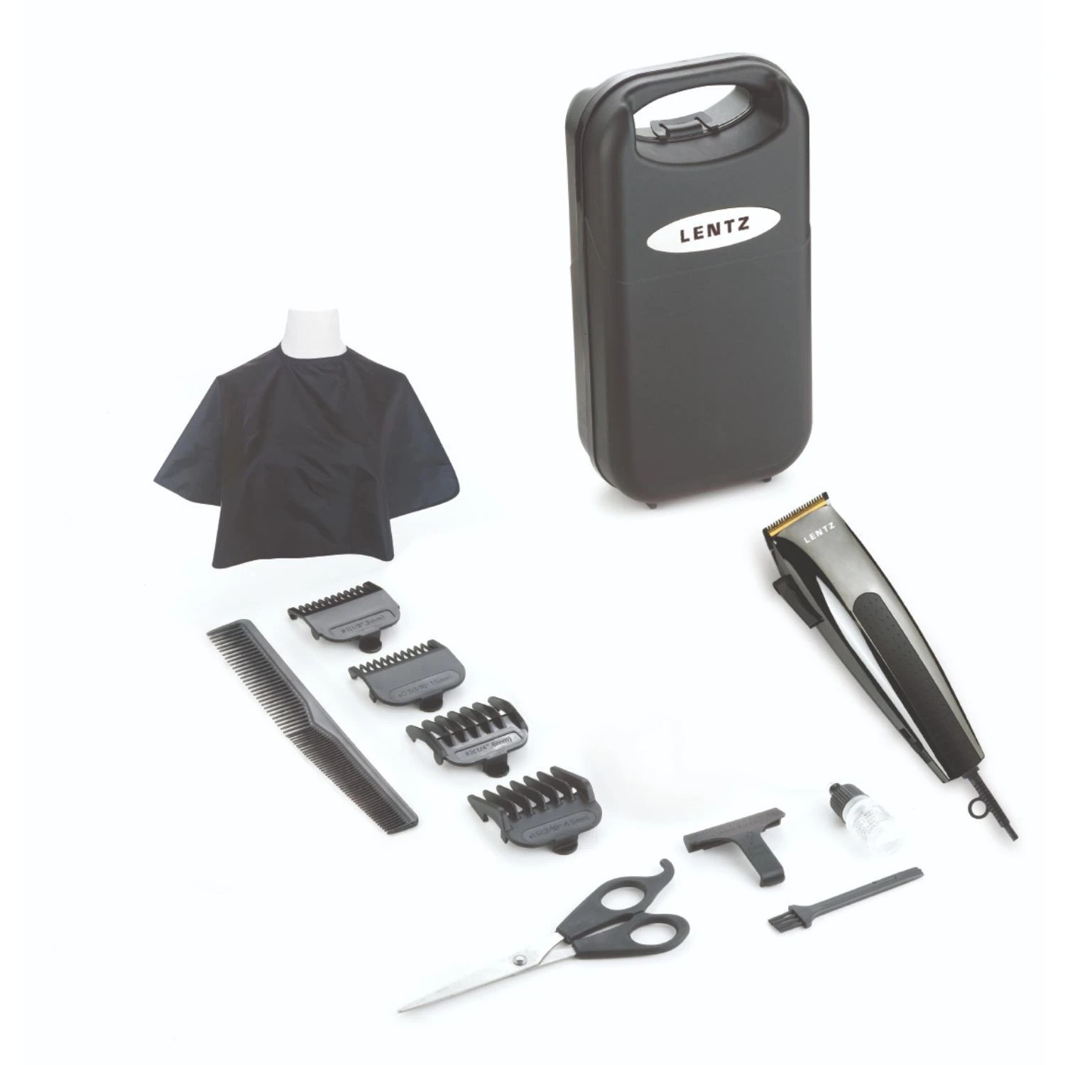 Met deze tondeuse van Lenz is het mogelijk professioneel en nauwkeurig het haar te knippen. De trimmer heeft een stille motor zodat het gebruik erg comfortabel is. DE messen zijn zelf scherpend en van RVS. Bovendien is de tondeuse uitgerust met 4 verschillende opzetkammen: 3, 6, 9, 12 mm. De set is compleet met schaar, kam, schoonmaakborstel, olie en kapmantel. En dit alles opgeborgen een praktische opbergdoos. Dus alles bij de hand tijdens het gebruik.