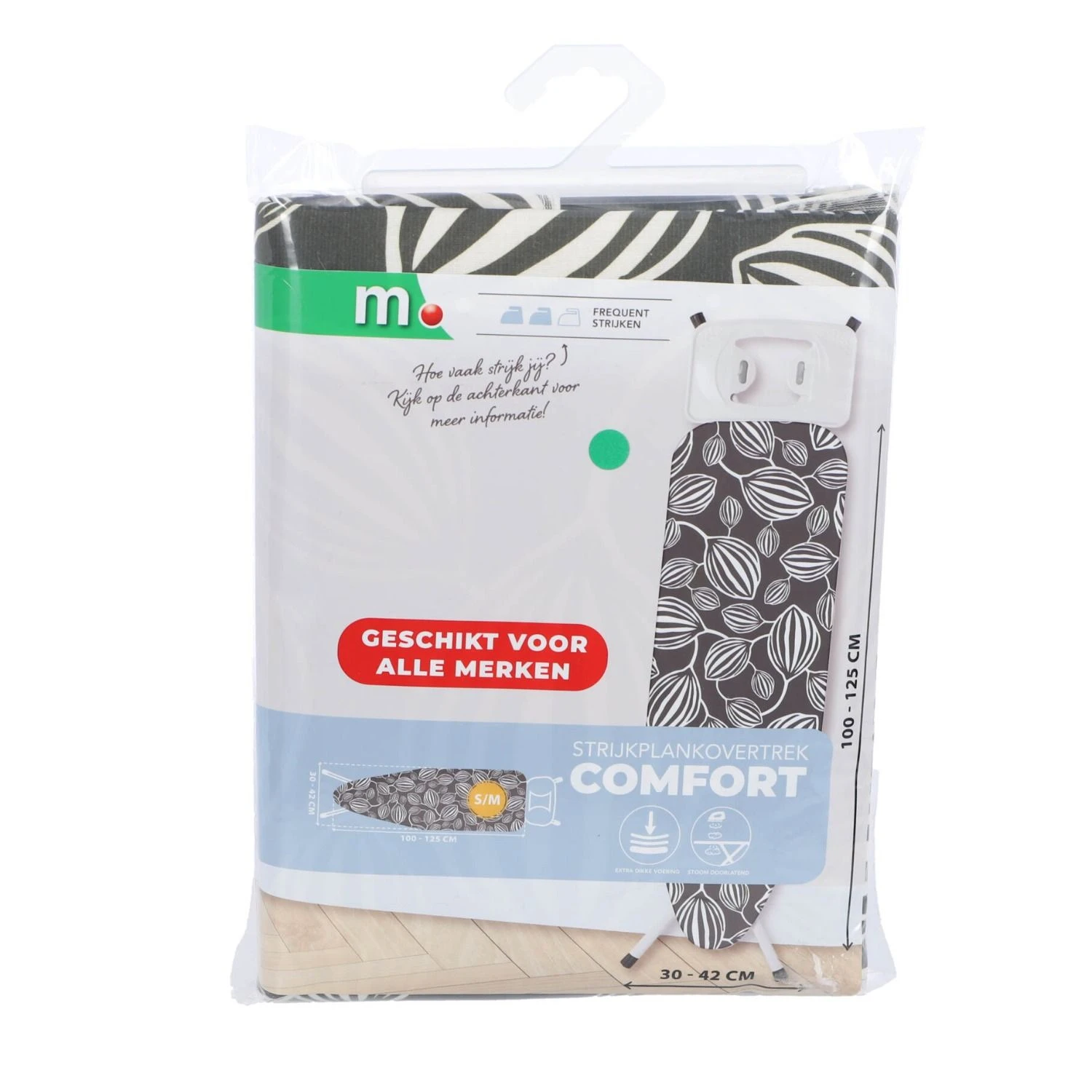 De Marskramer Comfort Almond strijkplankhoes zorgt voor comfortabel strijken. Dankzij de extra dikke molton onderlaag glijdt je strijkijzer over je wasgoed en maakt het een perfect strijkresultaat extra makkelijk! De hoes is donkergrijs en heeft een trendy print. Overige specificaties:
