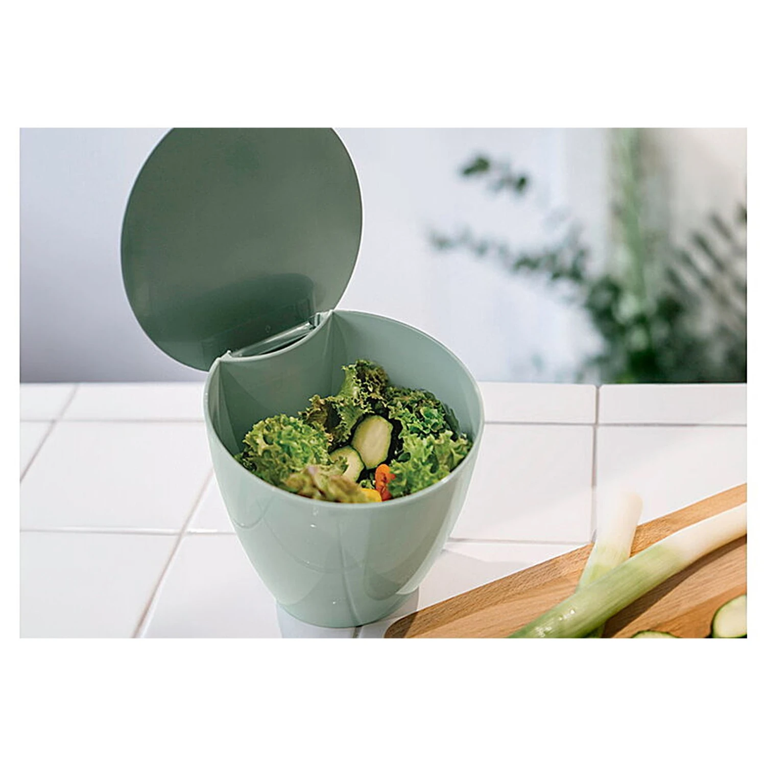 Dit leuke en compacte afvalbakje van Mepal is de perfecte oplossing voor het verzamelen van voedselresten op je aanrecht. Met een inhoud van 2,2 liter en een ruime vulopening neemt dit bakje ondanks zijn compacte formaat weinig ruimte in beslag. De hermetisch sluitende deksel zorgt ervoor dat nare geurtjes binnen blijven, terwijl de deksel ook open blijft staan voor gemakkelijke toegang tijdens het koken.