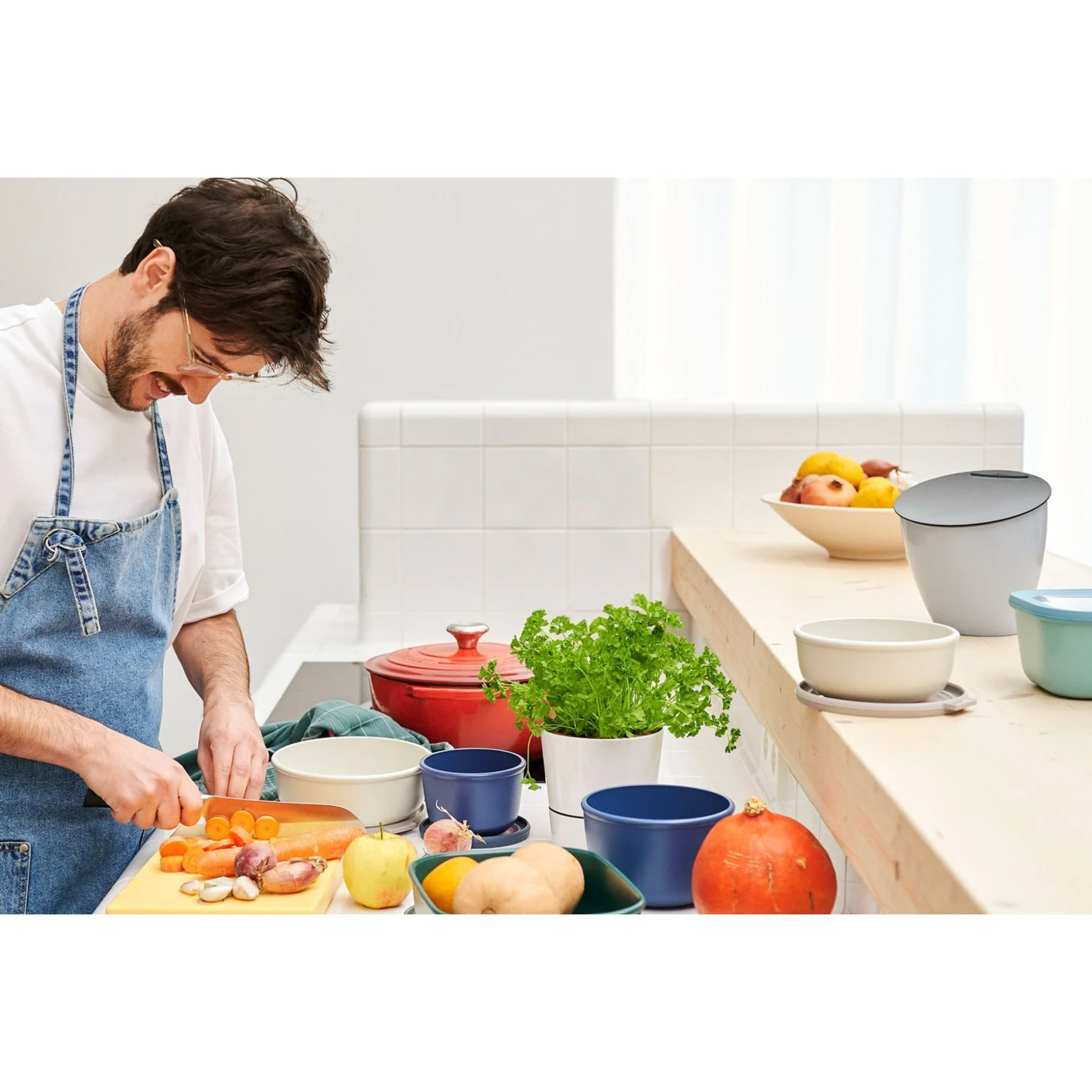 Merk: Mepal. Serie: Calypso. Inhoud: 2,2L. Diameter: 17,5. Hoogte:18,4. Materiaal: 100% gerecycled polypropyleen. Kleur: wit.