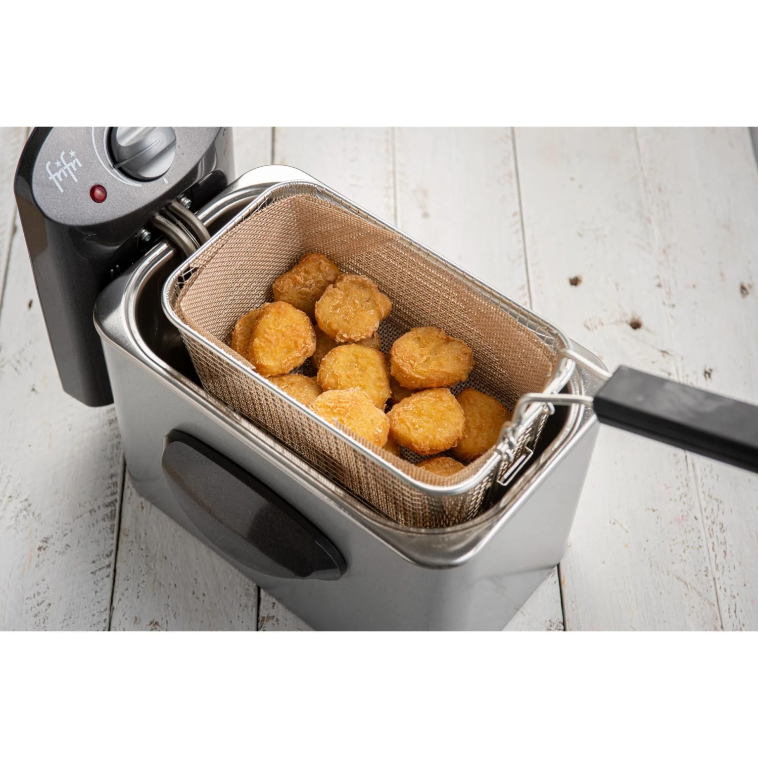 Voeg de Nostik Friteuse Filter toe aan je keukenarsenaal en geniet van langdurig verse frituurolie en smakelijke gefrituurde gerechten, keer op keer!