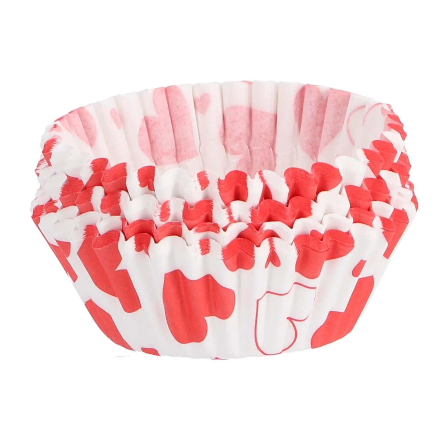 met hartjesprint! Er zitten 200 cupcake vormen in, daar ben je nog wel even zoet mee.