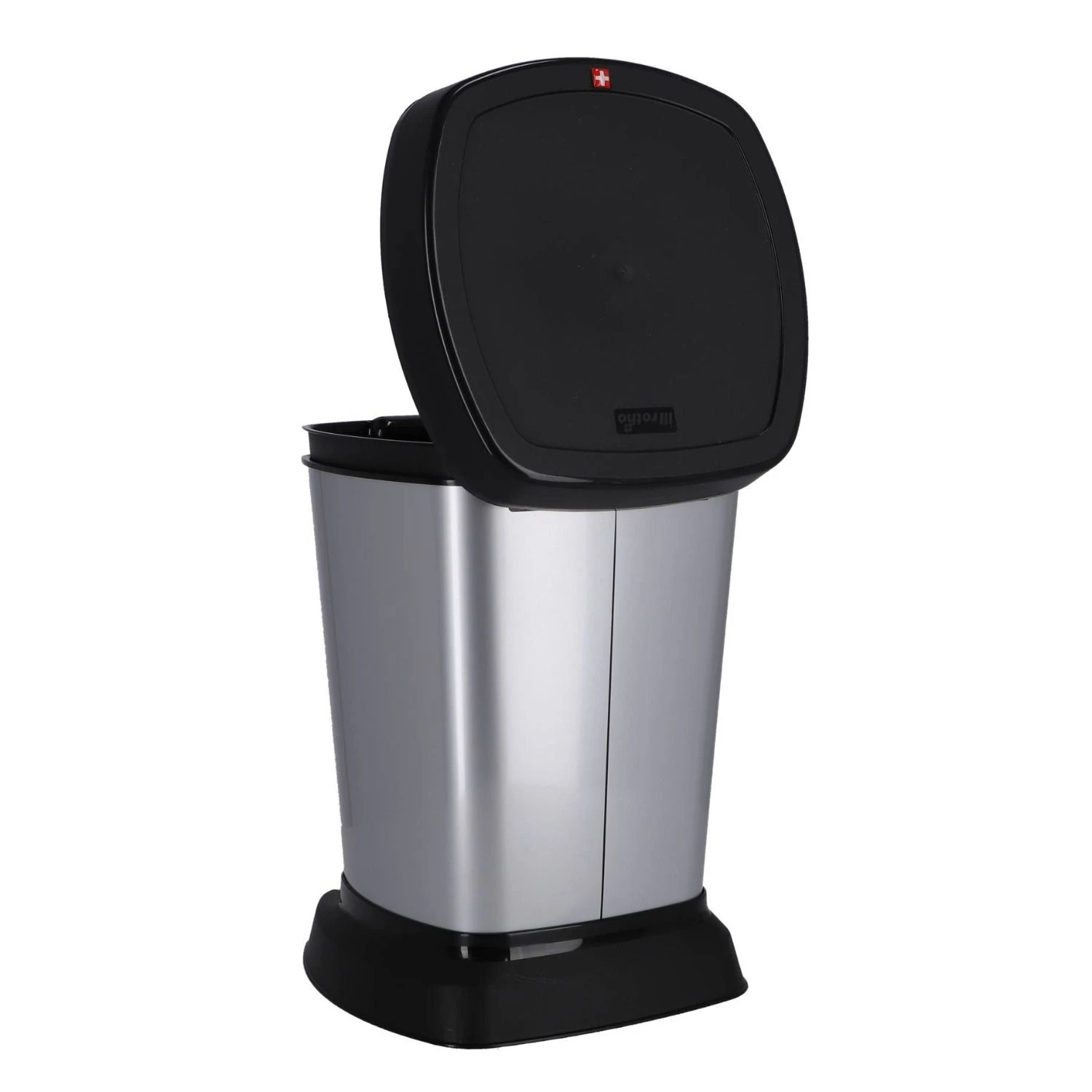 Het zwarte deksel sluit rustig en geruisloos, waardoor ongewenste geluiden worden geminimaliseerd. Daarnaast is de pedaalemmer voorzien van een losse binnenemmer, waardoor het verwisselen van vuilniszakken een eenvoudige taak wordt.
