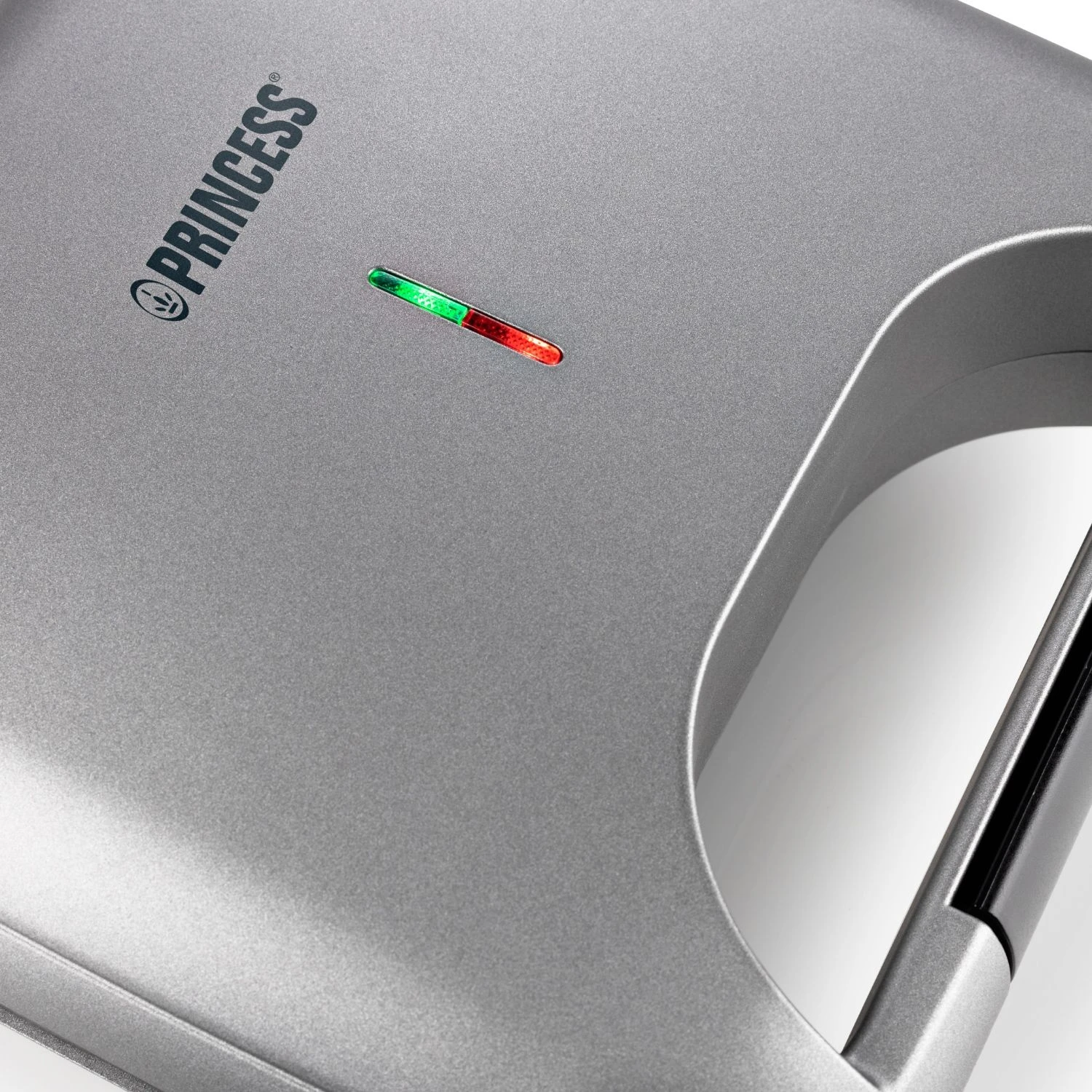 - Snel opgewarmd: Met een vermogen van 750 Watt warmt de Princess Sandwichmaker snel op. Het powerindicatielampje geeft aan wanneer het tosti-ijzer op temperatuur is.