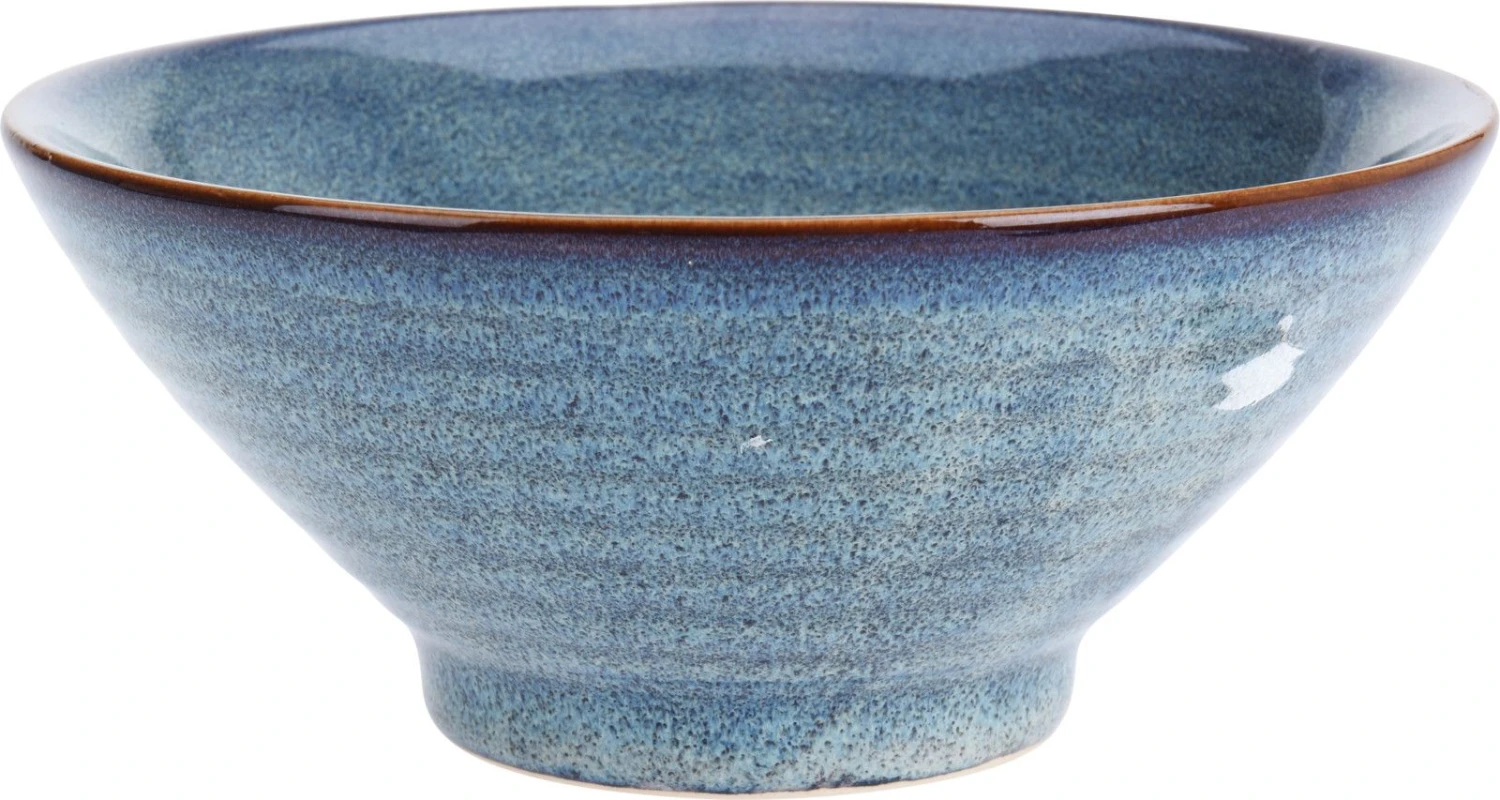 Deze ronde schaal is gemaakt van aardewerk. De kom blijft dankzij het materiaal veel beter bestand tegen tegen slijtage of krassen ten opzichte van keramiek of porselein. De unieke uitstraling van het aardewerk met een glanzende glazuur zorgt voor een modern maar authentiek design dat in elke keuken past. De ronde blauwe kom is vaatwasmachine- en magnetronbestendig. Inhoud: 650 ml. Afmetingen: 17 x 7,5 cm.