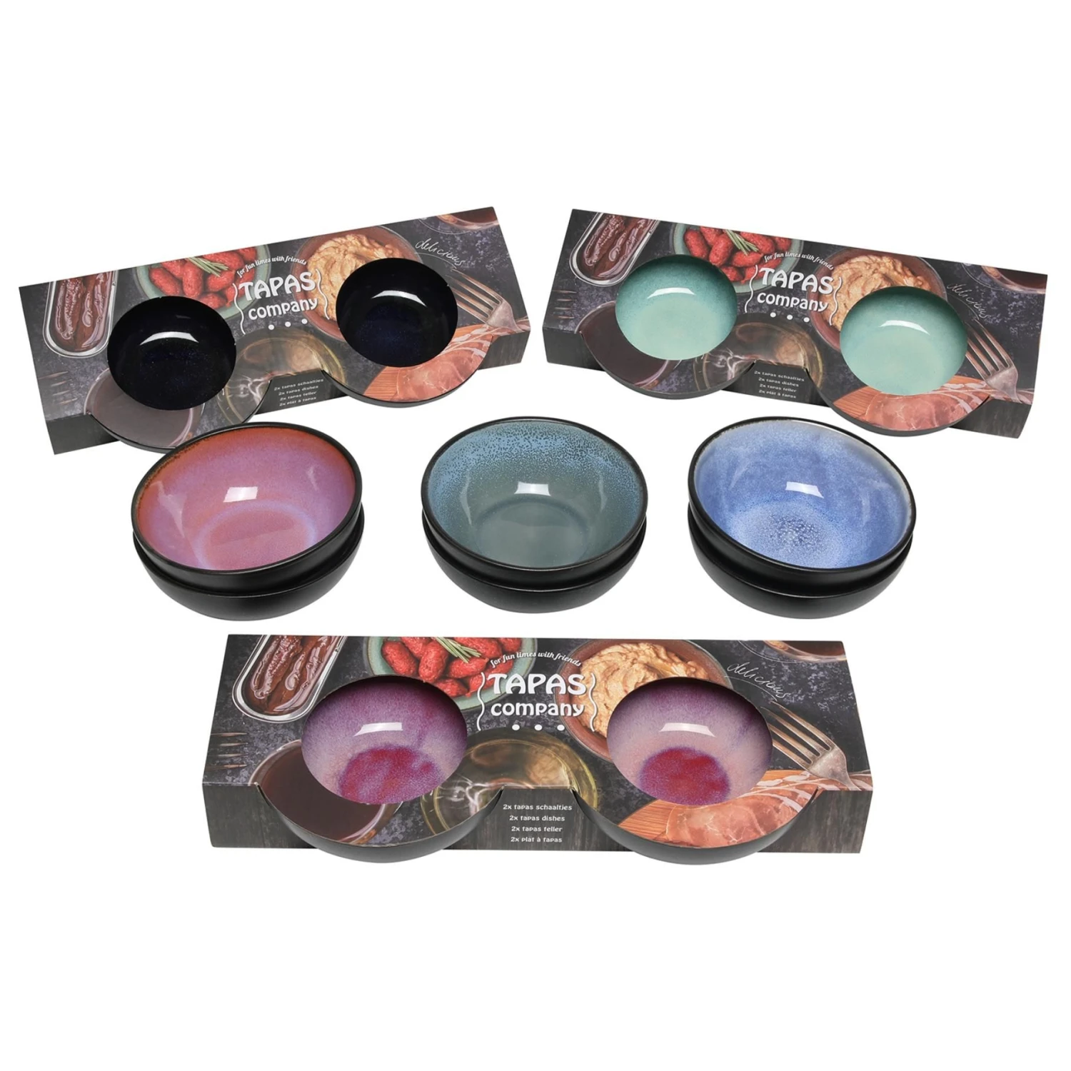 Schaal reactive glaze 12×4 cm set van 2 assorti