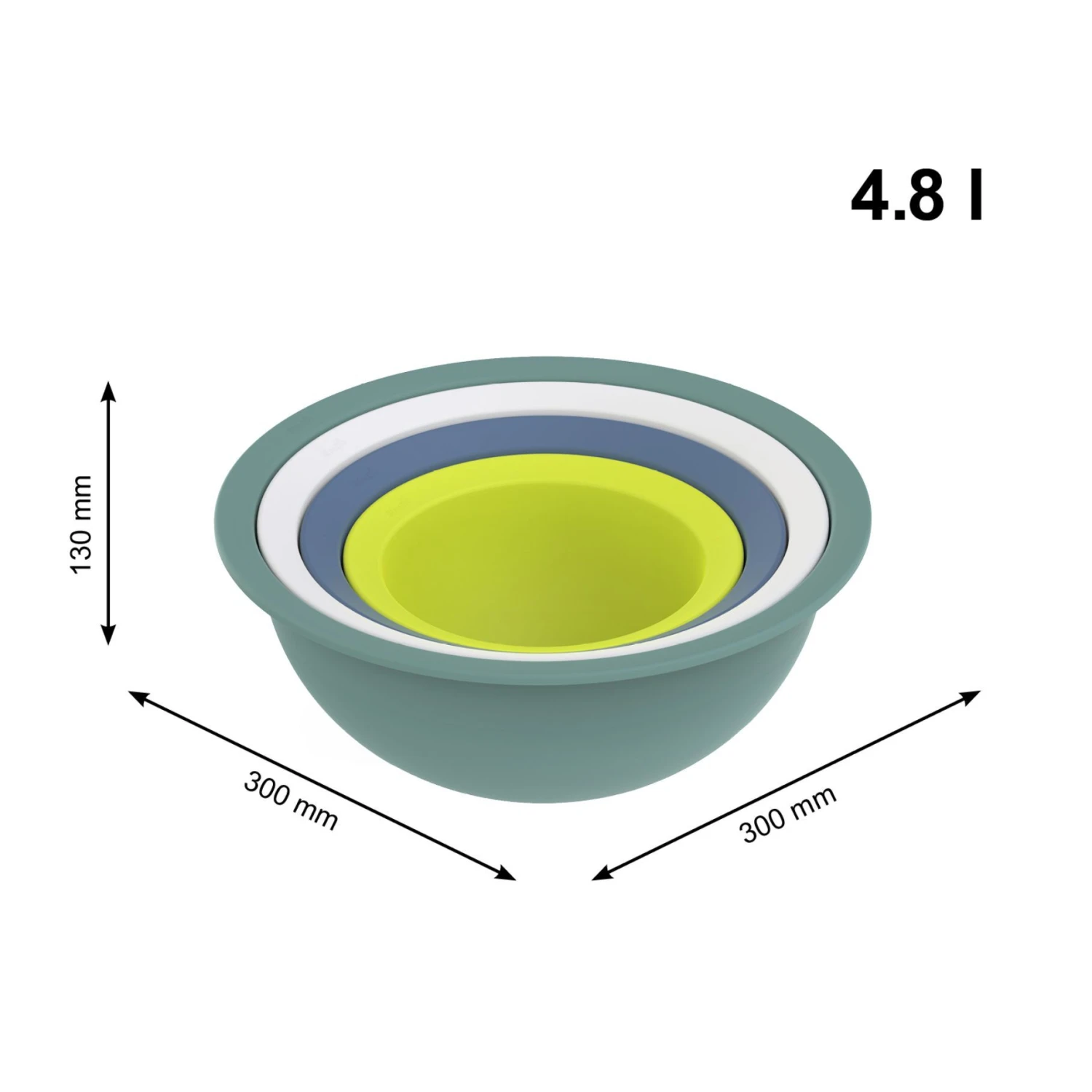 - Inhoud en afmetingen: De set bevat drie kommen en een vergiet, elk in een andere kleur. De afmetingen en inhoud van de kommen zijn als volgt: