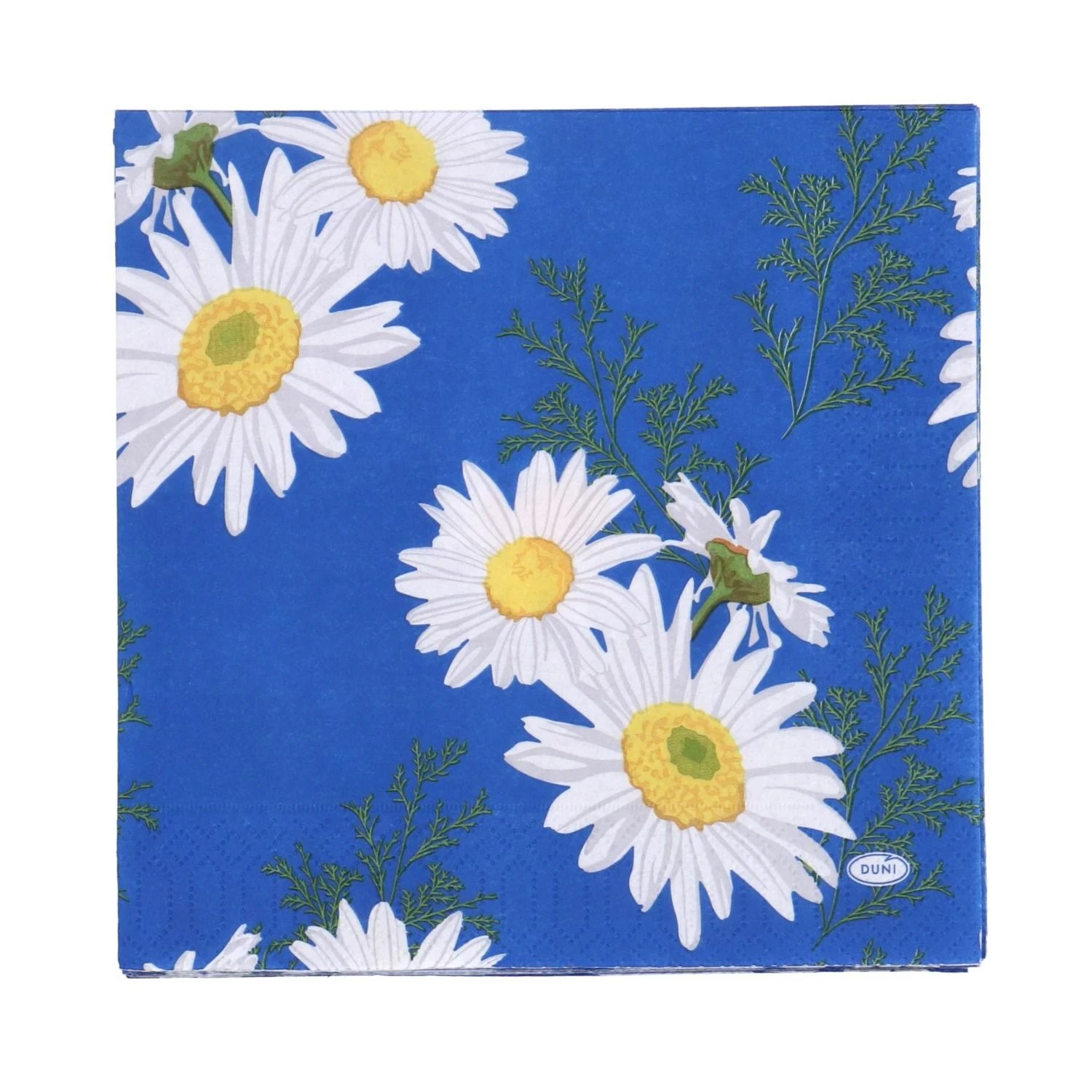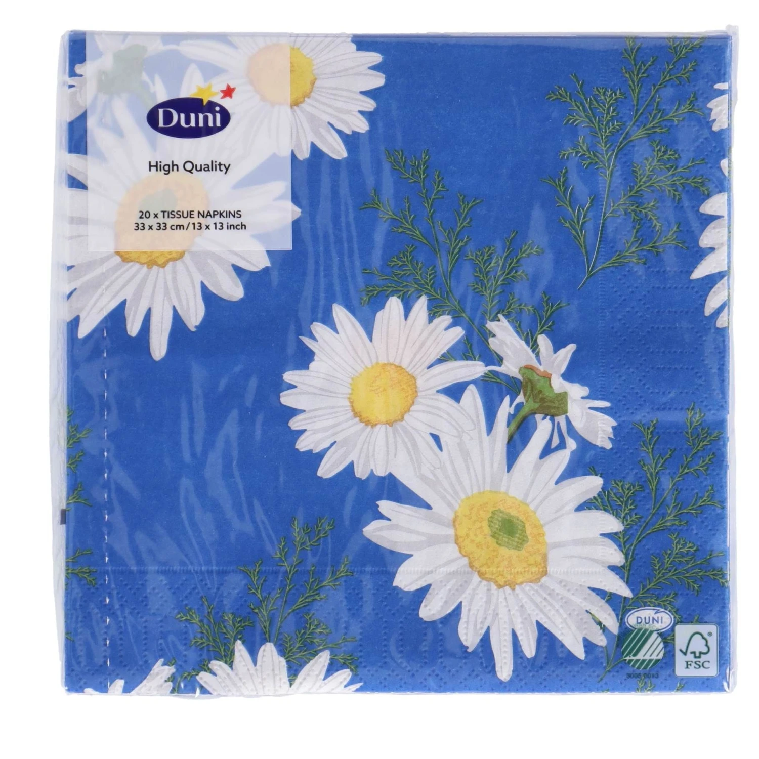 Creëer een levendige en verfrissende tafelsfeer met de Daisy Blue servetten en geniet van een heerlijke eetervaring omringd door de vrolijke pracht van zomerse bloemen.