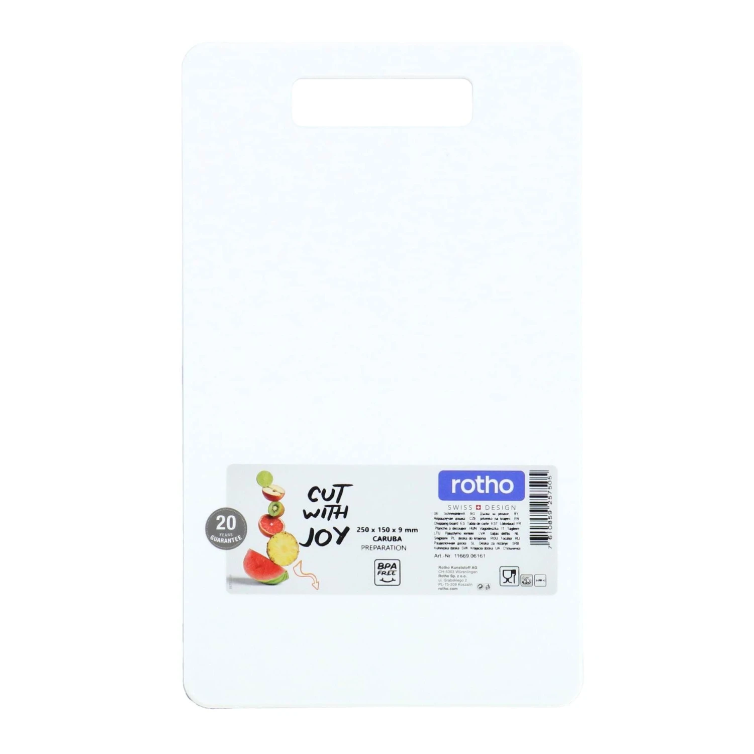 De Rotho Caruba snijplank in horizonblauw is de perfecte keukenaccessoire voor dagelijks gebruik. Met een compact formaat van 25×15 cm past deze kleine snijplank gemakkelijk op elke keukenoppervlakte. Gemaakt van duurzaam kunststof is deze snijplank 9 mm dik, waardoor hij stabiel en stevig is tijdens het snijden.