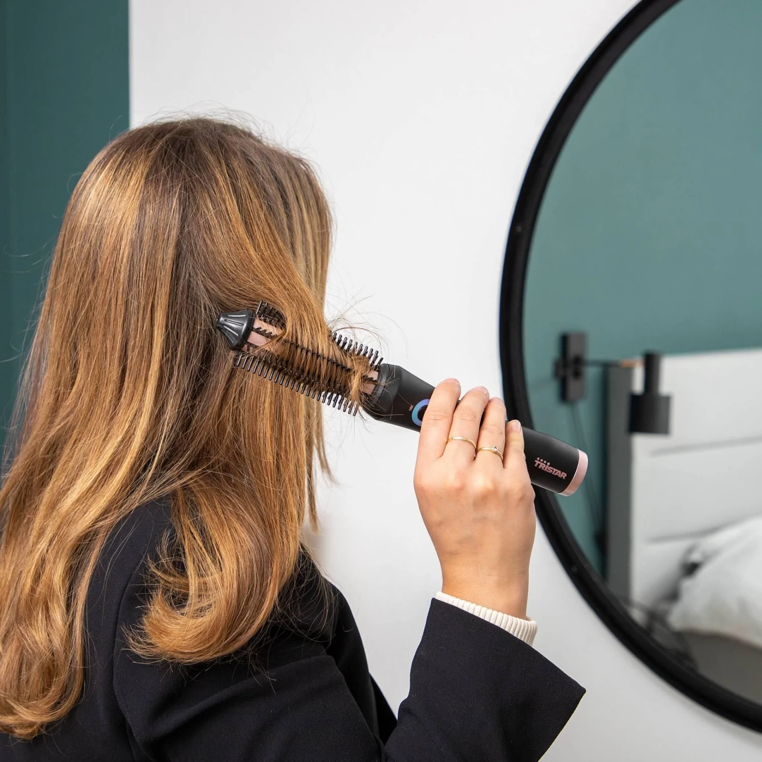 Deze set bevat de Tristar HD-2503 Snoerloze Haarborstel, een handige reistas, een USB-B kabel voor eenvoudig opladen, en een handleiding voor optimaal gebruiksgemak. Uitgevoerd in stijlvol zwart en roze, combineert deze föhn borstel functionaliteit met een trendy design.