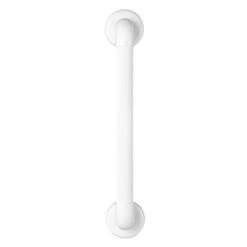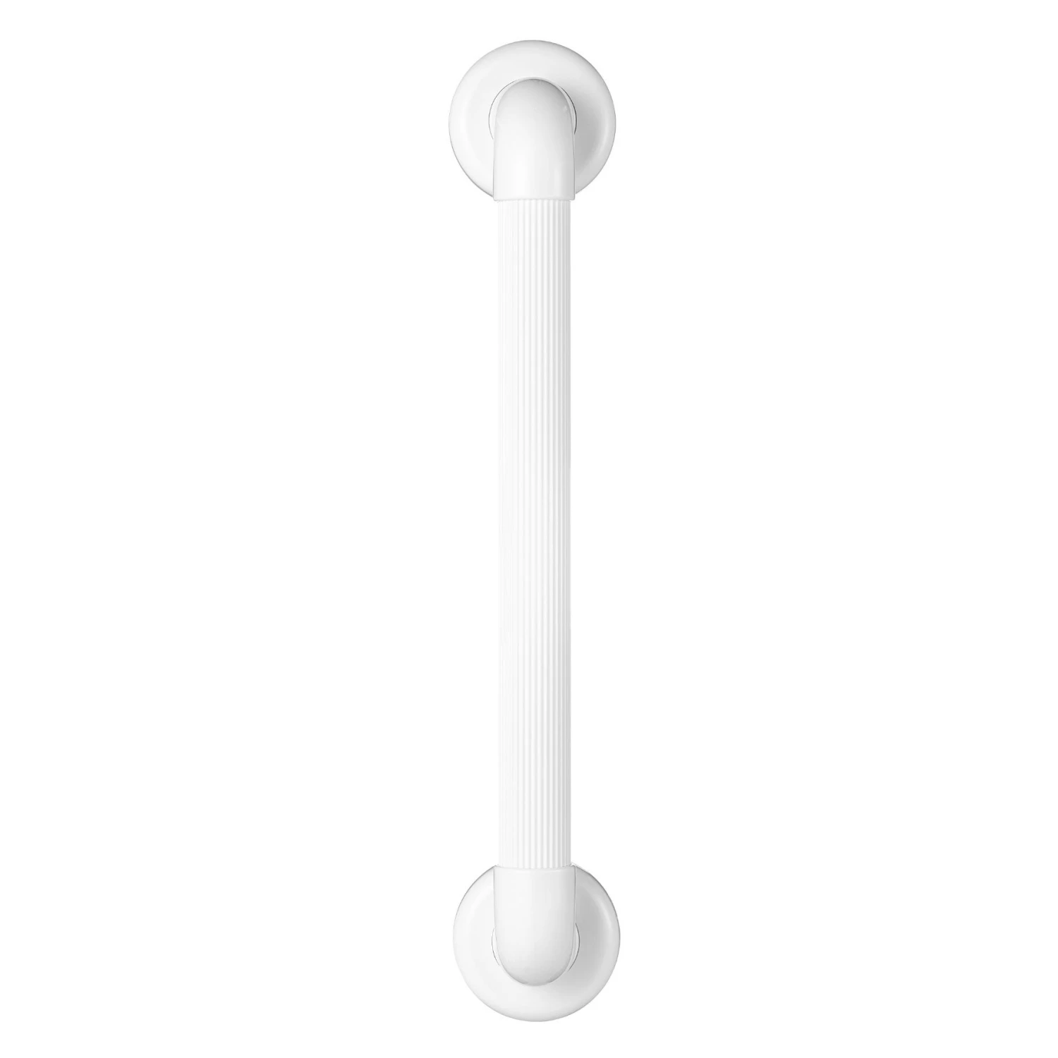 De wandbeugel met een geribbelde plastic toplaag biedt extra grip en voorkomt dat deze wegglijdt. Deze wandbeugel is ontworpen om ondersteuning te bieden aan mensen die moeite hebben met opstaan, bijvoorbeeld van het toilet, of bij het in- en uitstappen van de douche of het bad. De beugel kan aan beide uiteinden stevig aan de muur worden bevestigd met behulp van drie schroeven, waardoor hij veilig en betrouwbaar is bij dagelijks gebruik.